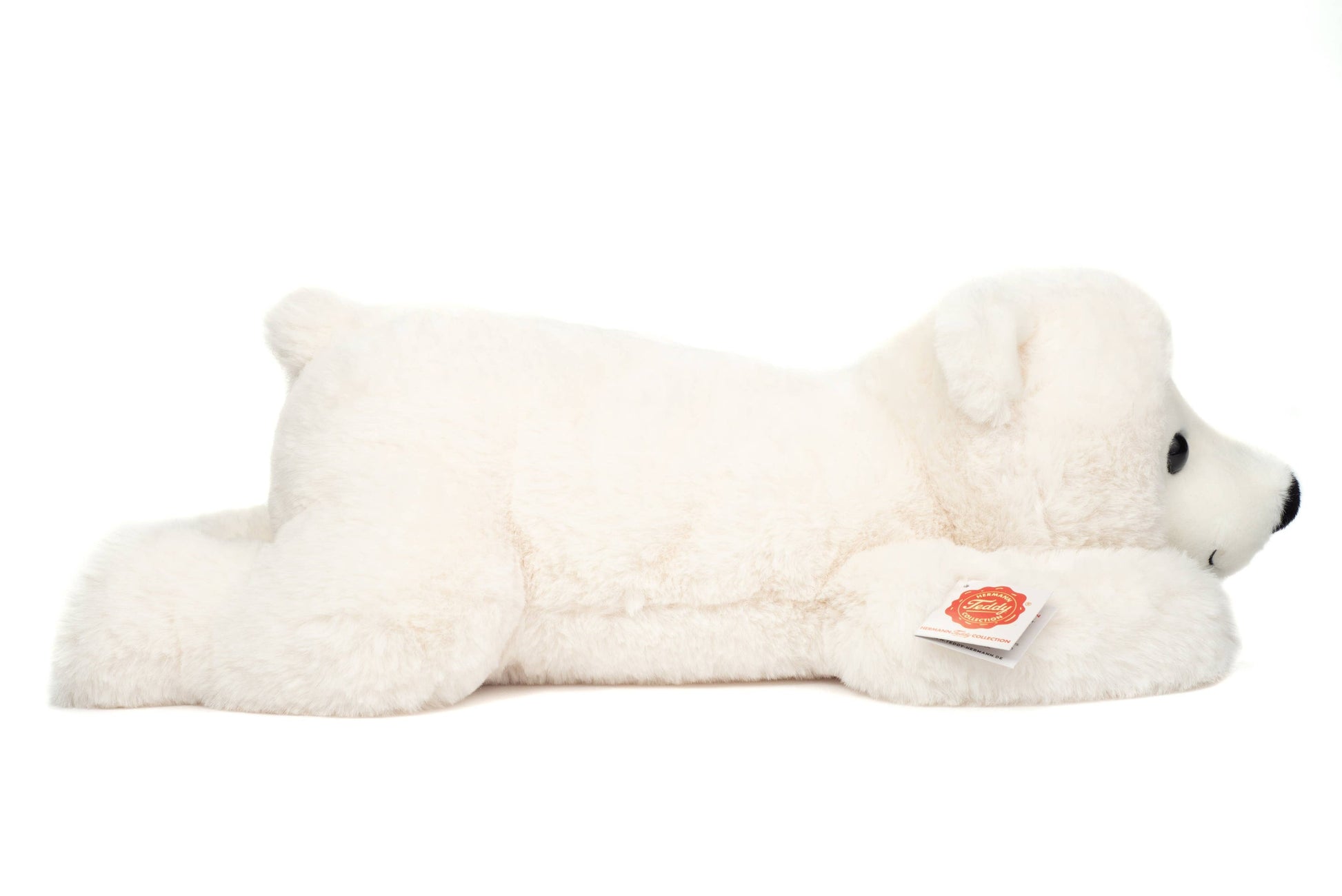 Teddy Hermanns niedlicher, 45 cm großer Eisbär ist ein kuscheliger und tröstlicher Spielgefährte, der sich nicht nur für kalte Wintertage eignet. Sein außergewöhnlich weiches Fell ist unglaublich flauschig, fast wie eine Wolke, und sein treuer Blick erobert im Nu Kinderherzen. Seine kleine Eisbärennase bleibt bei jedem Wetter trocken und warm.