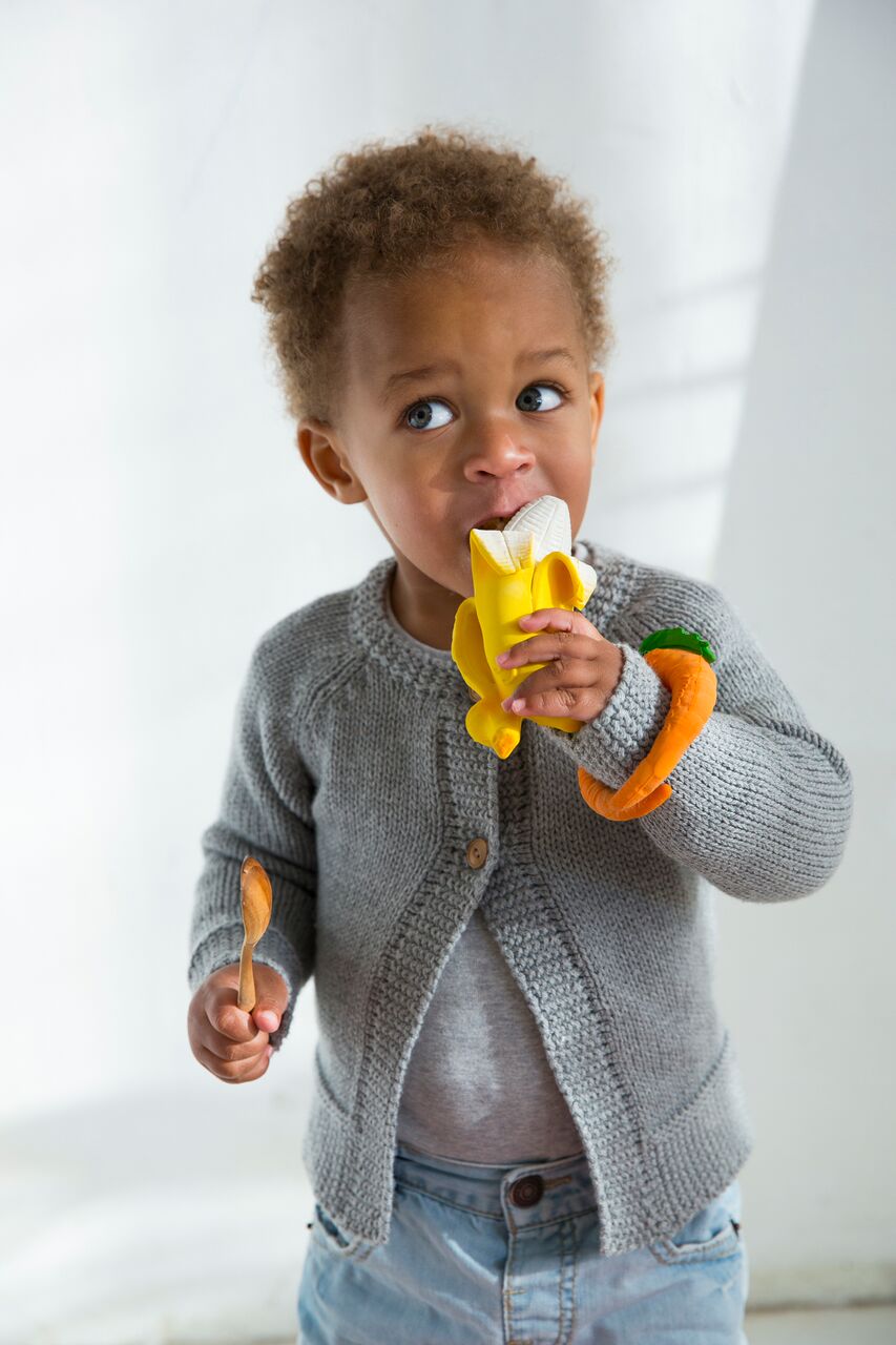 Ana la banane de la marque Oli & Carol fabriqué en latex d’hévéa 100% naturel, peut être utilisé comme jouet de dentition, jouet de bain ou comme objet décoratif.