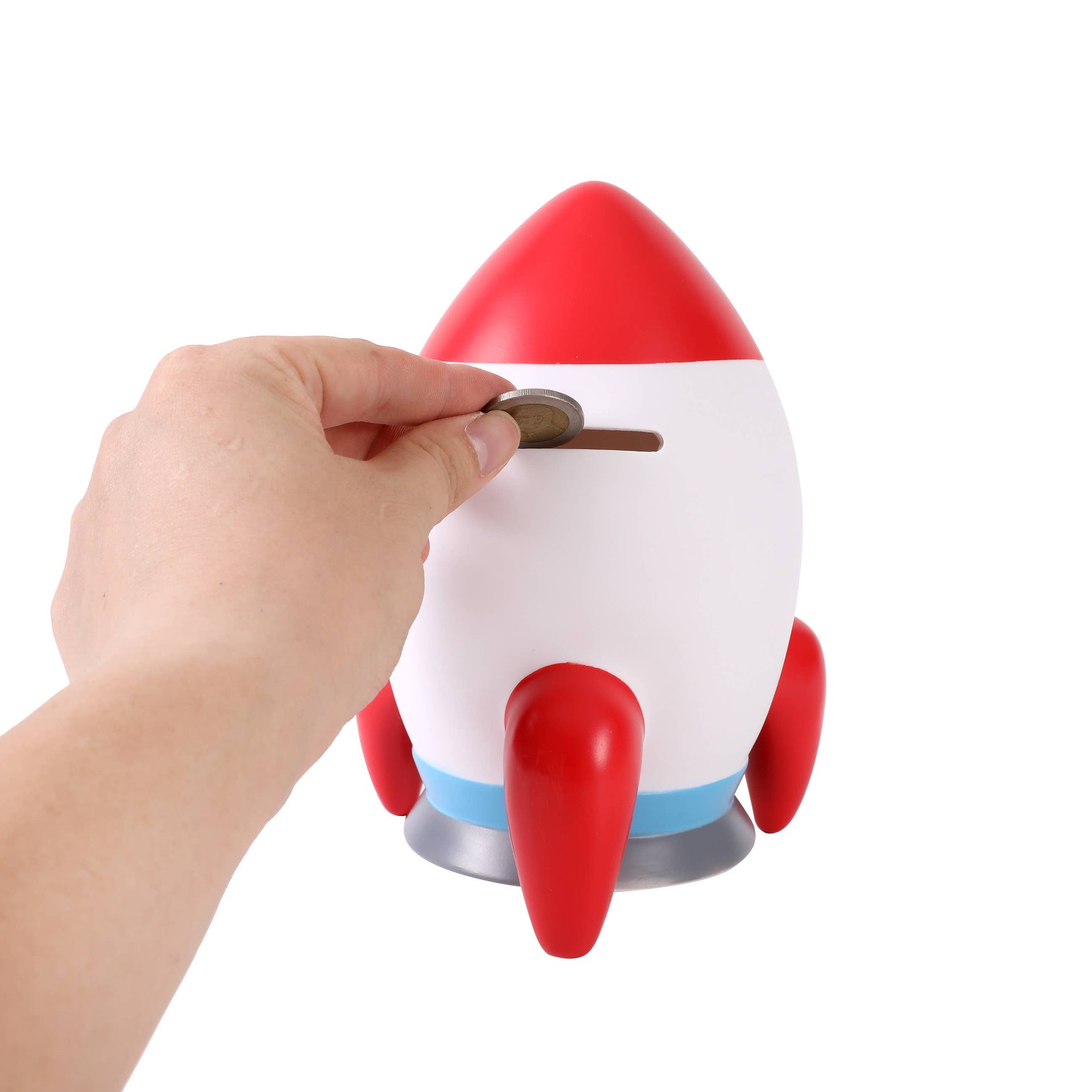 Tirelire fusée en métal au design « Space Adventure ». Une façon ludique et pratique de conserver vos pièces de monnaie.